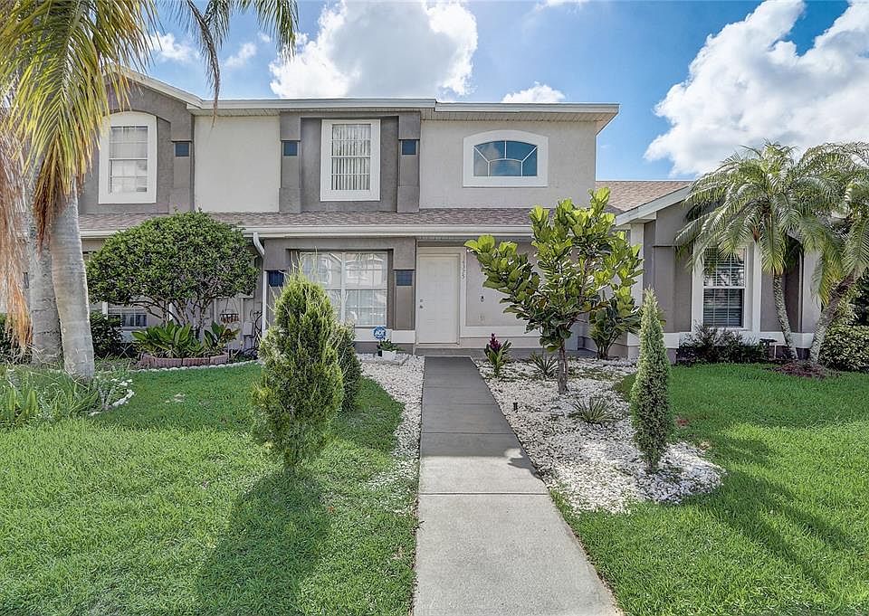 Beautiful two story townhome located in the Island Cove Villas at Meadow Woods. This well, maintaining townhome is perfect for first time home buyer or someone looking for a long term investment property or second home. This 3 bedroom, 2 bath townhouse has the convenience of having the primary bedroom on the first floor. It boasts a walk-in-closet, eating space in the kitchen, all appliances included, ceramic tile floors in all living areas and carpeted bedrooms on the second floor. Enjoy the view of the community pool from the screen enclosed back porch. Updates included: New roof, new water heater, Fresh interior paint, granite kitchen counter, renovated front porch including fresh landscaping, renovated backport. It's convenient located near the airport, 417 Expressway, OBT, John Young Pkwy, 528 toll, Sea World and many stores & theme parks. Tour this home before it is gone! It won't last!