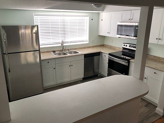 2 Bd. 2 Bath First floor condo in a 55+ community. Newly updated kitchen with ceiling fan New bath vanities with ceiling LED lighting.New carpet in bedrooms and living room. Washer and dryer included Screened lanai with new tile.One assigned covered carport.Pet friendly(1 at 25lbs.)Very active community with clubhouse,heated pool,saunas,library,tennis courts,shuffleboard all included in monthly fees