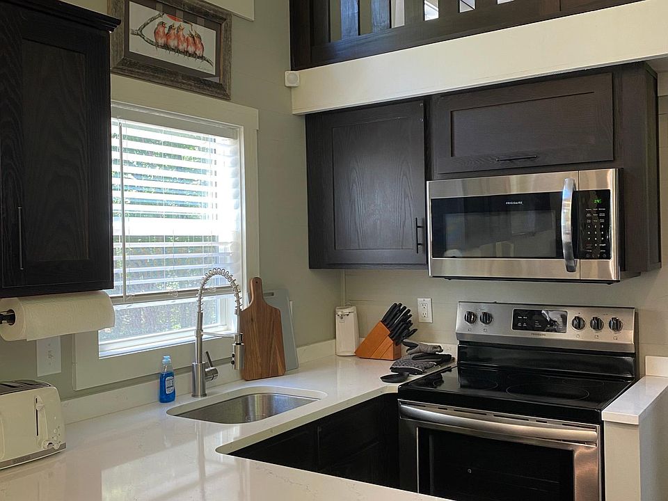 New tiny home located near Dollywood. Perfect for someone who wants a small home. Fully furnished (no washer or dryer). Wooded lot, gravel driveway. Month to month only. Water, electric, propane and wi fi included. Note that picture of outside does not show new elevation and 5 stairs up to the deck. Owner pays for water, sewer, electric (up to $100/month), propane, and wi-fi. Tenant responsible for removing trash (no local trash service), payment of electric bill above $100/month to landlord, and cleaning fee. No smoking, no pets. Gravel driveway suitable for 2 cars.