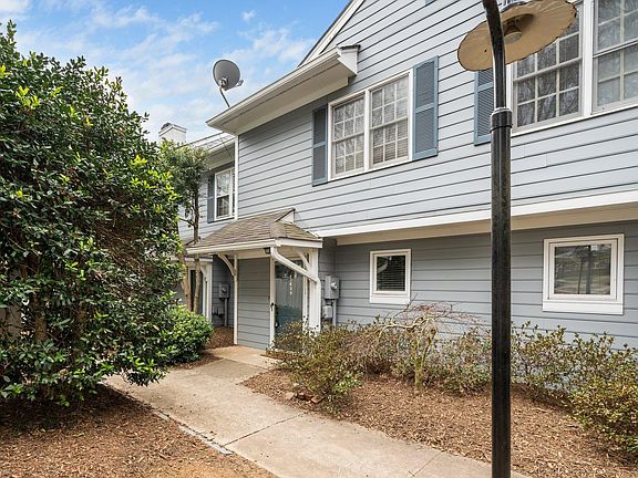 This Barton Place townhouse has so much to offer! The main level includes a functional and efficient kitchen with granite counters. It opens to a combined living and dining space with LVP flooring and a wood burning fireplace. The living space opens onto a lovely fenced patio with stairs that lead down to the parking lot, making for easy access that is unique to this unit! A convenient powder room rounds out the main level. Upstairs are two generous bedrooms. The primary has a beautifully vaulted ceiling and a convenient vanity. A Jack and Jill bath connects to the second bedroom. A stackable washer and dryer are located in the hall between the two bedrooms and two additional closets on the stairs provide extra storage. Granite counters in kitchen and bathrooms were installed in 2020. HVAC was replaced in 2021, the range in 2022 and the water heater in 2024. Enjoy stress-free townhouse living with an HOA that maintains the roof, exterior, fencing, parking and landscaping. Truly a turn key property in a location that can't be beat. Easy access to downtown Raleigh, Village District, Five Points, Iron Works and more!