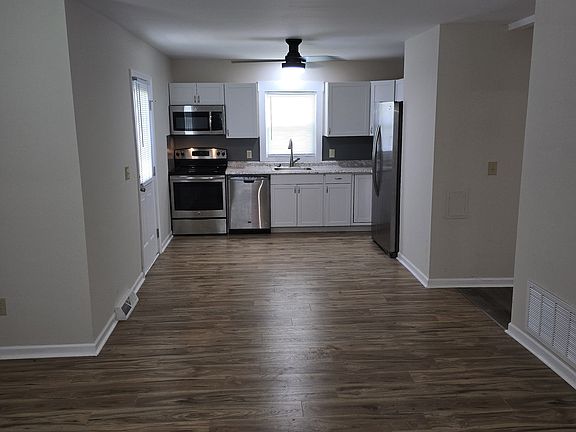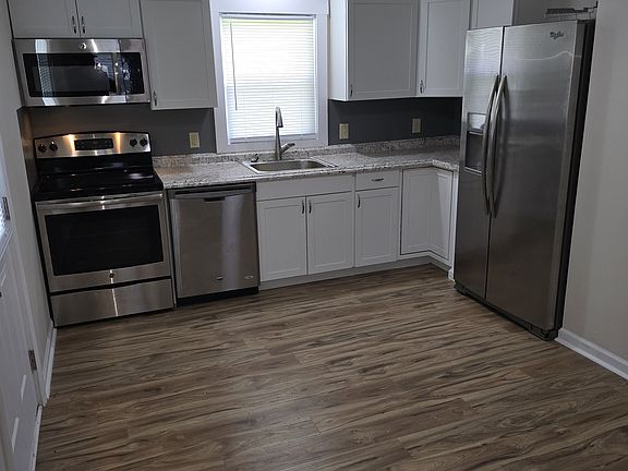 A beautiful, completely renovated 2 bedroom 1 bath home. Perfect for the single professional who works from home and needs a home office, or 2 working singles wanting a new home while sharing housing costs. Will also work for a 3 person family. So many possibilities! Convenient in town location on a quiet side street corner lot. Everything inside and out is brand new! Remote controlled ceiling fans with LED lights in 3 rooms. Full package of stainless steel kitchen appliances to include stove, microwave, dishwasher, and side by side refrigerator feezer with door dispensed ice/water.