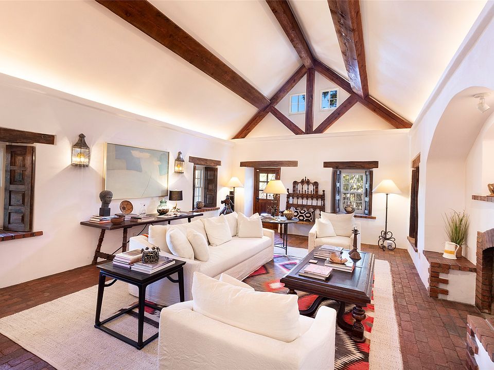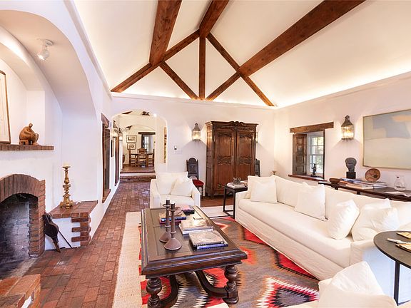 This was Betty Stewart’s personal residence. Beyond charming, this house & guest house are surrounded by mature landscaped grounds. This one acre is entirely fenced and has an electric gated entrance. There are plenty of parking spaces for guests within the grounds. This house features all of the design elements that Betty is famous for i.e., deep front and back portals for outdoor entertaining. Adobe construction, plaster with sharp edges, deep set windows, specialty lighting, tumbled brick floors, 6 one-of-a-kind fireplaces and so much more. The intimate spaces have an unerring eye for the perfect room size. Never to be replicated, this home is an opportunity to live within a piece of art and local history.