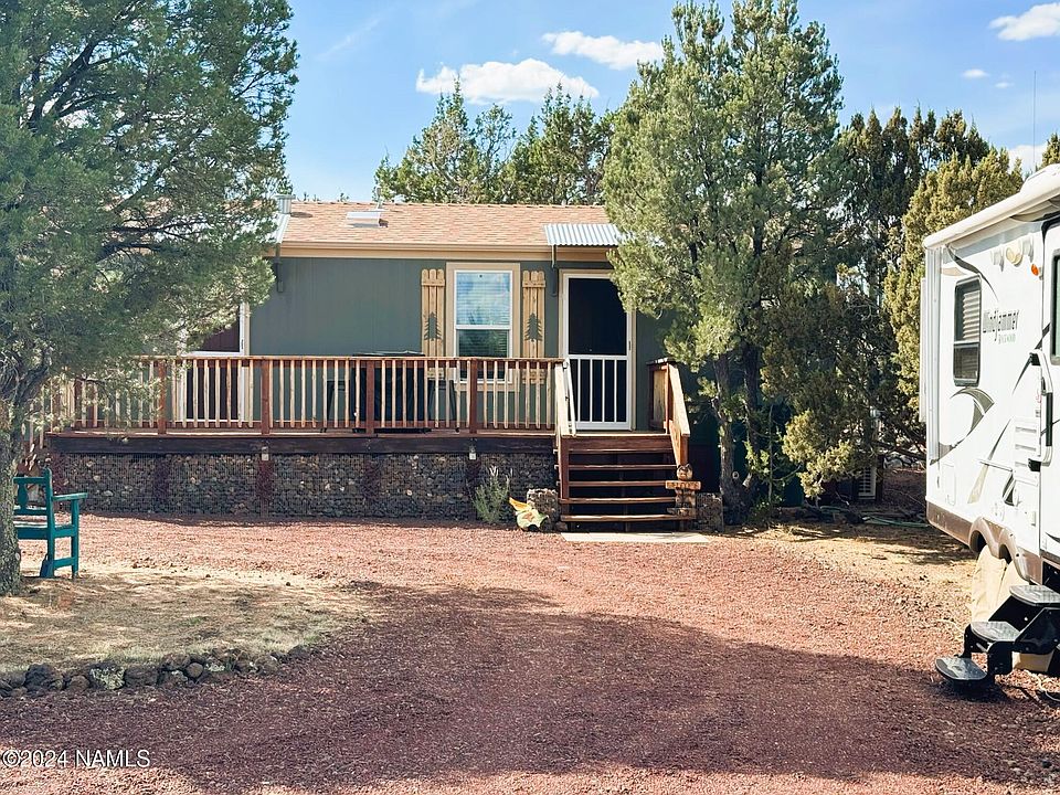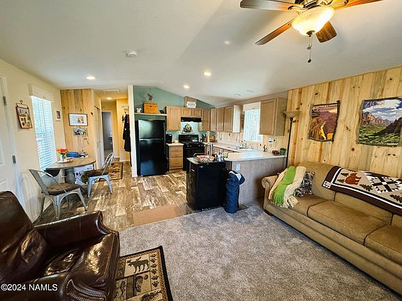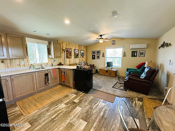 This adorable home is one of the most affordable homes in Northern Arizona! On 1.07 acres in Lake Kaibab Park, you will enjoy being right outside of Williams and the peace and quiet and privacy that the heavily treed lot offers. Fully fenced and gated with cinder driveway, one car carport with shipping container workshop. Fully FURNISHED one bedroom, one bath 16 x 40 2018 Cavco permitted. 6 x 25' deck permitted. Travel trailer is negotiable outside of escrow and can be used as a guest house. Enjoy the recreational activities and being in the vicinity of the Grand Canyon and just a short drive up to Williams. Healthcare, entertainment and shopping nearby in Williams. Easily accessible. No HOA, Versatile for primary, secondary, short term or long term rental. Low taxes! Come check it out!