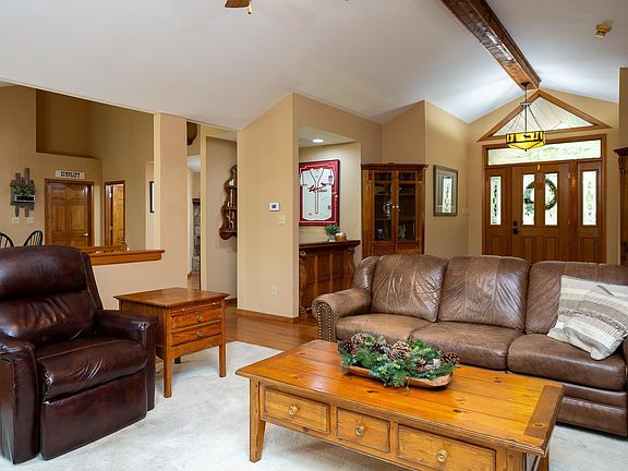 Welcome home to 1438 Eagle Ridge Road. Discover the perfect blend of elegance and comfort in this stunning 5-bedroom, 3.5-bath atrium ranch home, nestled on 4 serene acres. With an expansive open floor plan, vaulted ceilings, and abundant natural light pouring through large windows, every corner of this home feels bright and welcoming. The updated kitchen is a chef’s delight, flowing seamlessly into the breakfast area and hearth room, all centered around one of three cozy fireplaces. The main floor boasts a primary suite and the convenience of main floor laundry. Downstairs, the walk-out basement offers 4 additional bedrooms and 2 full baths, perfect for family or guests. Step outside to the expansive deck and soak in breathtaking views of nature—an ideal setting for entertaining or peaceful relaxation. With a 3-car attached garage and modern amenities throughout, this home is a true sanctuary, offering space, style, and tranquility. Additional Rooms: Mud Room