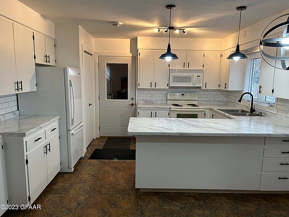 Kitchen updated in 2020 with painted cabinets, new countertops and backsplash, new sink, and light fixtures. Bathroom remodel in 2020 with painted vanity, double sinks, new fixtures, and flooring. Windows replaced between 2004-2007. Large backyard with patio and 8 x 10 shed.