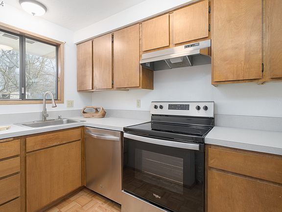 Welcome to this cozy and affordable unit in a well-managed complex. This corner unit is the farthest unit off street of the four units in this building, with only one shared wall and a new roof as of last year. Featuring brand new kitchen counter top, carpet and light fixtures throughout, freshly painted interior, and newer stainless appliances, plus stacking washer/dryer. Located on the bike path and bus line, near shopping and services for your convenience and only a few miles from U of O campus. This complex offers designated carport parking for one car, as well as guest parking spaces, and locking exterior storage. Low HOA monthly dues are only $213, which includes community pool and garden, trash/recycling, all exterior maintenance, and management. The perfect starter home, downsize, or investment property!