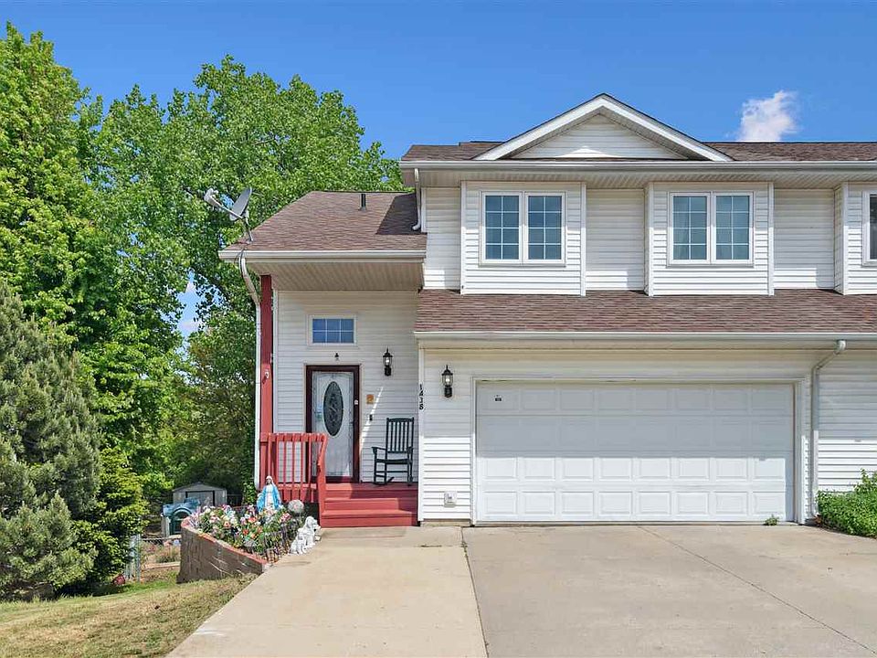 This spacious zero-lot home with no HOA offers comfort, functionality, and a fantastic location. The main level features a large living room with vaulted ceilings and direct access to your deck—perfect for outdoor entertaining or relaxing. You'll also find a half bath and a bright kitchen and dining area with newer appliances. Upstairs includes three bedrooms, including a generous primary suite with a private ensuite bathroom. The finished lower level adds even more value with a fourth bedroom, a non-conforming bonus room perfect for a home office or gym, and a large family room that opens to a fully fenced backyard with mature trees. Additional highlights include updated flooring throughout, newer AC and water heater, two storage sheds, and a location just minutes from parks, shopping, I-380, and the University of Iowa—offering the ideal blend of space and lifestyle.