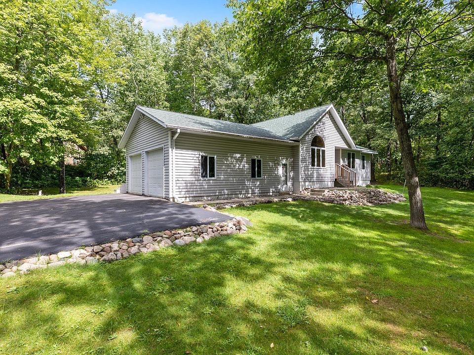 Welcome to your new home nestled on a .80-acre wooded lot. Featuring 3 bedrooms, 2-full bath rooms, and a tongue and groove vaulted ceiling. The full unfinished basement offers a blank canvas to bring your creative visions to life - imagine a home theater, a gym, family room, or a workshop tailored to your preferences. The oversized 2 car garage is insulated and there is plenty of storage space. Outdoors, the expansive wooded lot provides an escape from the hustle and bustle, allowing you to enjoy the serenity of nature in your own backyard. The boat access to Gull Lake is a just a mile down the road. The area also features great restaurants, award winning golf courses, and downhill skiing. It's time to schedule a showing, and make this house your new home.
