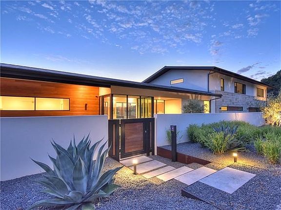 Exquisite hilltop modern home in Westlake Hills designed by Matt Garcia situated on 2.040 acres with spectacular hill country views. This home has the perfect floor plan with every inch of functional and usable space along with incredible privacy. Quality construction, high-end designer finishes by Karen Kopicki, architectural details throughout, a stunning negative edge pool and spa, outdoor grilling kitchen, and side yard.