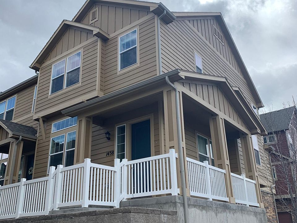 Make a home for your family in this 3 bedroom, 2.5 bathroom townhome just a quick drive to I-25. Has a dining room, tasteful living room with fleck carpeting, 5 piece master bathroom with separate shower and dual sinks, first-floor laundry room with washer and electric dryer hookups, granite counters in kitchen and bathrooms, contemporary kitchen, microwave, dishwasher, electric range, garbage disposal, refrigerator, 2 car attached garage with openers and keypad, covered front porch. This 3 bedroom townhome is waiting for you in Castle Rock. New carpet will be installed April 2020. This community is a Smoke Free community. This townhome has been occupied by a dog prior to September 2017 for those that have allergies / sensitivities. This townhome has been recently occupied by a cat. New carpet was installed April 2020. 1438 Orton Way in Castle Rock is listed for lease by Red Hawk Crossings LLC. It is available for an April 29th move in (after all verifications conducted, lease signed, and certified moneys collected). Lease amount is value range of $1775 to $1850 per month depending on application strength, and approved pet. Deposit will be $50 less than the agreed upon monthly lease amount. Approved pet possible with additional deposit - $500 for small dog or cat. Features / amenities: Built in 2015, 3 bedrooms, 2.5 bathrooms, 2 car attached garage, 1580+ finished square feet, tile entry flooring, flooring is fleck carpet/tile, refrigerator, dishwasher, electric smooth top self cleaning range, granite kitchen and bathroom counters, tiled kitchen floor, 1st floor laundry room with electric dryer hookup, Master bedroom suite, 5 piece master bathroom with double sinks and soaking tub, walk in closet, recessed lighting, 2" faux wood blinds, gas forced air heating, central air conditioning, Douglas County schools, light and bright, close to walking / biking trails, smoker free, small pet possible with additional deposit and preapproval, easy access to I-25 / Hwy 85, close to new Miller Activity Complex close to park, trash and recycling service included New carpet installed April 2020.