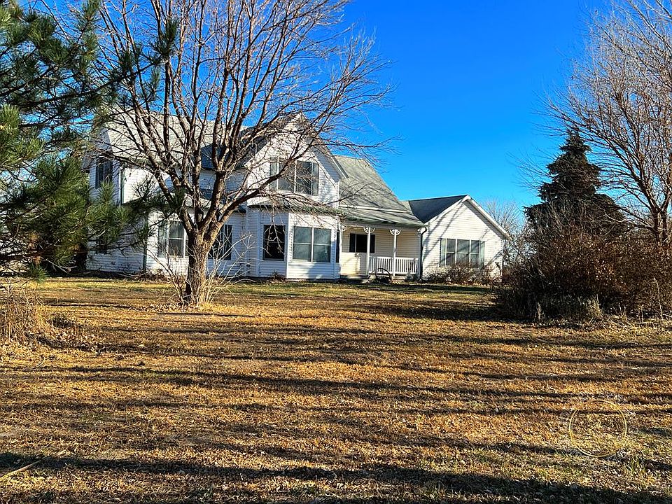 The house was moved to this location approximately 20-25 years ago. At that time it had all new electrical, plumbing, insulation, siding and more!! It features a main floor master bedroom with an office off the master. Master bath with nice walk-in closet. Huge living room. Upstairs there are two bedrooms, full bath and a play room. 36x48 metal building with 6" concrete floor. 14.25+/- acres
