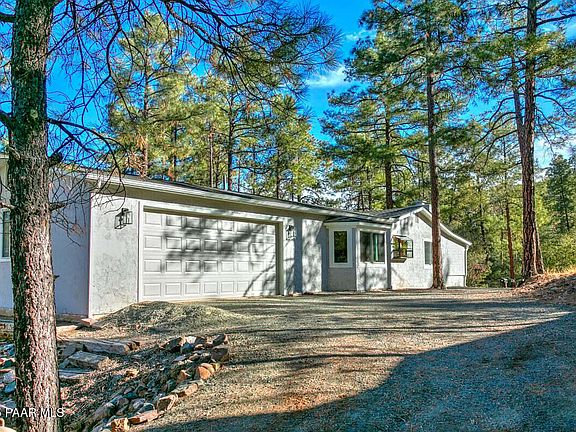 Located in the tall pines and just 3 miles from Yavapai County Courthouse, this charmer features 3 bedrooms, 2 full bathrooms, and a bonus room that is currently used as a workout room. Situated on a 1/2 acre lot, there is plenty of room to park an RV. Many recent improvements have been made including Renewal by Anderson windows, paint inside and out, new roof in 2021, new garage door opener on the 2 car garage and refinished hardwood flooring in the living and dining room.