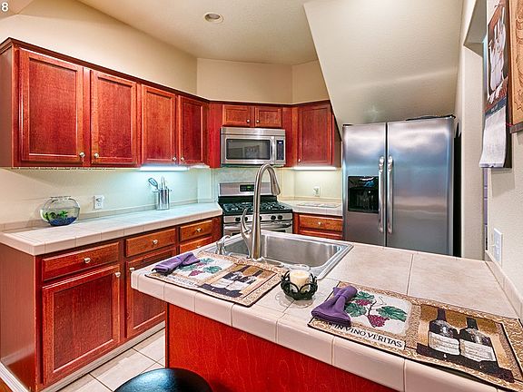 Stylish open contemporary design w/2 Spacious Master Suites! 14 and 11 foot vaulted ceilings. Handsome great room downstairs with wood laminate and tile flooring. Gas fireplace and open dining area with large sliding glass door that has a garden view and adds lots of light. Large windows downstairs and upstairs. Private covered patio for entertaining. Kitchen with a pantry, upgraded built in dishwasher and new stainless appliances with a 5 burner gas stove, large side by side refrigerator with water and ice maker and built in microwave. Two large matster suites both with spacious bathrooms and lots of storage. Large walk-in closets. 1/2 Bath on main floor with closed off laundry area and attached spacious garage with opener. Located just east of McMenamins and walking distance to downtown Troutdale.