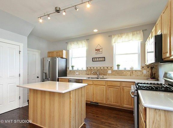 It's so easy to fall in love with Prairie Crossing. You'll find it even easier to fall in love with this stunning home! Walking in the front door, gorgeous hardwood floors & an open/great room floor plan create a beautiful, spacious feeling you will love! With views of the backyard & nature, the great room flows into your kitchen, which has an oversized island, room for a very large table, &access to your beautiful backyard & patio. Every bit of the kitchen is gourmet & perfect! NEW, upgraded stainless steel appliances are perfect for the fussiest of chefs, & the light in the kitchen & the whole house is just fantastic! You have a main floor master & also a second floor master...perfect for an in-law arrangement, guests, a teen/college-age suite or even an office (but it's large!). Upstairs you have 3 lovely bedrooms all with new frieze carpet & a master bedrm & master bath that is VERY well-appointed. New hardwood floors, new carpet, new paint, new appliances...this is it! Don't wait!