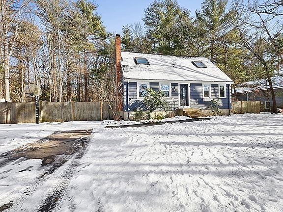 Beautiful Cape located on a private wooded lot in West Mansfield. Gleaming hardwood floors welcome you into this beautifully updated home featuring spacious living room, a formal dining room with fireplace, and eat-in kitchen with exquisite granite countertops. The large family room with cathedral ceilings, skylight and enormous windows give natural sunlight and a view of the backyard. The backyard is perfect for entertaining and is completely fenced in, with a 1200 sq foot patio and firepit. Upstairs features 3 bedrooms and 1 full bath. The basement includes 400 sq ft that can be used as a gym area, office, or playroom. This is truly a must see and won't last long!