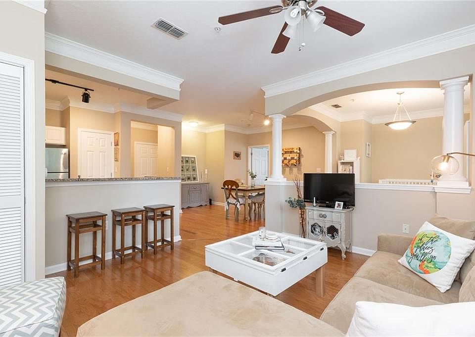 FHA & VA Approved. This is the largest 1-bedroom, TOP FLOOR, condo offered within the immaculate Enclave community. It even has a separate den/office and a 1/2 bath for guests! Lots of upgrades including: granite counters, stainless steel appliances, wood flooring, garden tub w/ separate shower, enormous walk-in closet, and more. Newer HVAC & water heater. The Enclave offers so much including: a resort-style pool, tennis, on-site management, 2 acre park, gym, movie theater, gated entry, carwash center & much more. Walking distance to the billion dollar CHOA development
