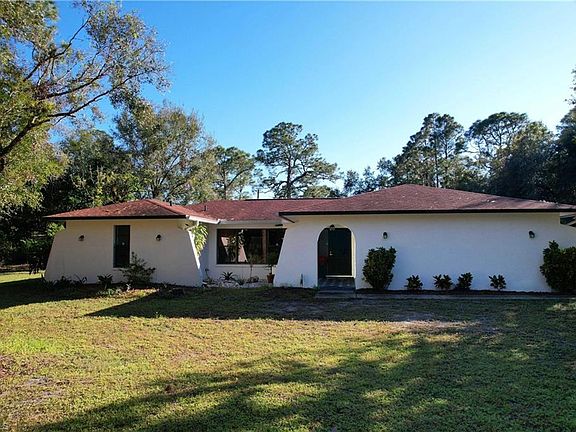 Property is back on market due to no fault of the seller. Discover this beautifully updated 3-bedroom, 2-bath ranch-style retreat, immaculately situated on a private just under 1-acre lot on a peaceful, quiet street. Step inside to find new flooring throughout and an open-concept living area perfect for gatherings. The fully upgraded kitchen features sleek stainless steel appliances, ample counter space, and a layout perfect for culinary enthusiasts. Both bathrooms have been stylishly renovated to complement the home’s charm. The spacious primary suite offers a custom-designed closet, providing both functionality and a touch of luxury. Outside, the screened lanai invites you to relax while enjoying views of the expansive, private yard. A new AC unit ensures year-round comfort, while a state-of-the-art Reverse Osmosis system enhances water quality. This home truly shines with its beautiful blend of modern amenities and peaceful surroundings. Don't miss the chance to make this move-in-ready gem yours!