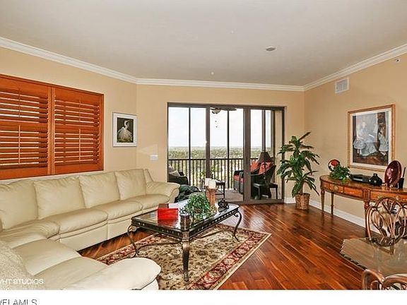 Bring your fussiest, most demanding clients to see this one... Gorgeous sweeping SW view of lakes, bird preserve, sunsets, city lights from this impeccable 14th floor South Tower condo. And, its not just the view, as this 3BR/3Bath has been modified and upgraded beautifully! BR3 has been converted into a spacious office/TV room with double doors, acacia wood floors in all major areas, BR's too; an open kitchen with beautiful cabinetry and bar area, large Master BR suite has custom walk-in closet. Guest BR has its own ensuite bathroom & walk-in closet. Tastefully furnished and equipped throughout so moving in will be easy. Relax on the large, comfortable lanai, workout in the well-equipped fitness center or take a walk or bike ride in the park with a swim in the resort-style pool to follow--life is easy at Riva! Boasting a location that is truly close to everything--beaches, restaurants, major shopping, airport & offering easy access to Estero/Bonita/Naples. Two parking spots & a storage room in garage. Plus, 1-2 smaller pets are welcome here too. Ideal for seasonal living as the security is excellent, condo well-managed & funded & the residents friendly. Come see for yourself!