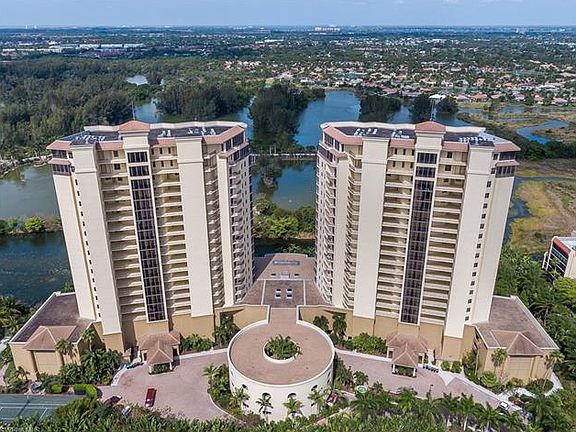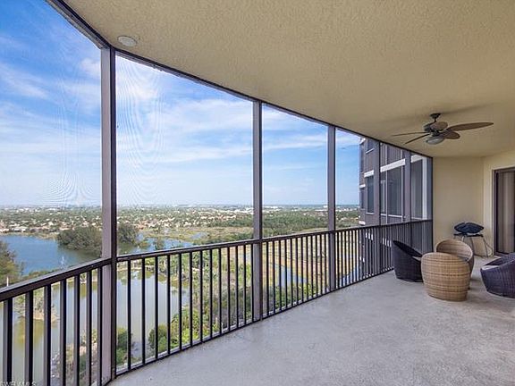 Welcome to High Rise Paradise at Beautiful Riva Del Lago in this Amazing 19th floor corner unit Over Looking 279 Acres of Lakes and Beautiful Foliage. Master suite has access to lanai amazing views overlooking Lakes Park. Spacious open living room with two sliding glass doors. Kitchen has granite counter tops, premium appliances, tons of cabinet space. Large Bedrooms with laundry room close to the guest bedroom. Master has beautiful garden tub, separate shower, dual sinks and vanity. Tile throughout. Amenities concierge service, heated pool with twin spas, gazebo, picnic benches and barbeque area. Canoe/kayak/paddle board launch, and direct access to Lakes Park. Well-equipped fitness center, and tennis court. Inviting elegant lobby, with access to the club room, media lounge equipped with pool table and service bar,business lounge. Kitchen facilities area available for reserved parties. Two ground floor under the building parking areas, extra storage next to parking space and close to lobby door. Riva Del Lago is Conveniently located in the Heart of South Fort Myers. Close to shopping, restaurants, only 15 minutes away from airport and beaches. Call today for your private showing.