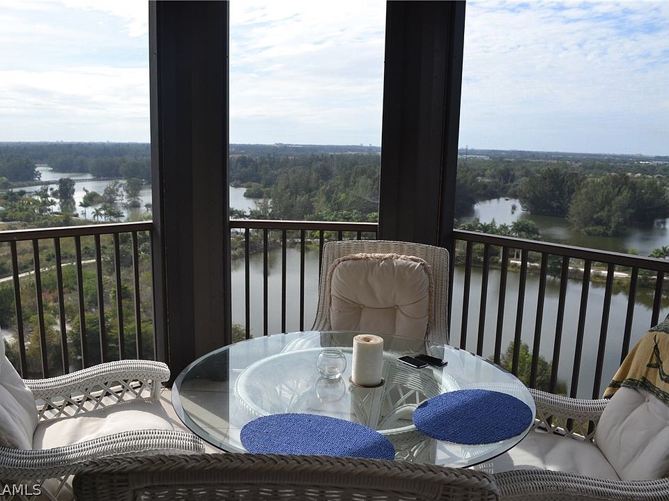 SELLER JUST SPENT APPROX $7000 ON NEW AIR CONDITIONING SYSTEM.It does not get any better than this view. Choose between southern and western views over lakes park from the perfect height. All the comforts of almost 2700 square feet of indoor outdoor living. Electric Roll down wind rated hurricane shutters on large lanai with a couple of fans and plenty of room for all your guests. Excellent décor...with tile floors, crown moldings, electric fireplace. Very bright home with plenty of natural light. Excellent amenities include fitness center, pool, spa, tennis, library, media room, community gathering space. Two under building parking spaces plus a large lockable storage area. Close to the beaches, shopping, 15 minutes to the RSW airport. Onsite concierge and maintenance. The views and the space does not get any better than this 4 bedroom home.