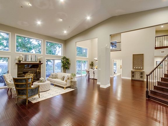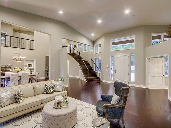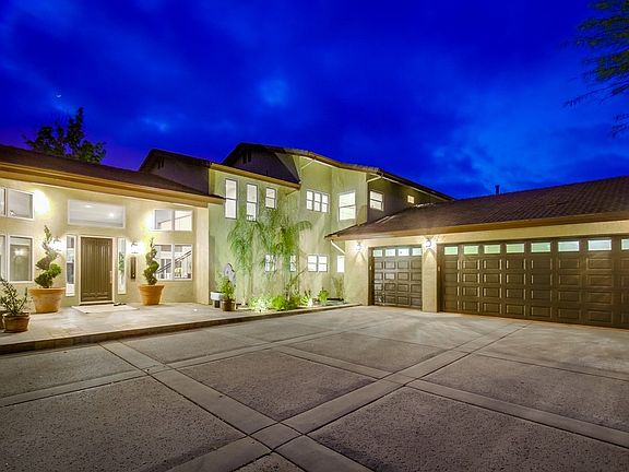 Beautiful custom estate with sunset views. Whole house SOLAR system. Located in desirable gated Bridlewood Country Estates. Your dream home at the end of the cul-de-sac sited up a long, private driveway. Retreat to the luxurious master bedroom located on the main level with a second master and guest quarters located at the opposite wing of the house with separate entrances, along with a guest house and 5 car garage. New carpet, new interior paint, salt-water pool/spa, built-in bbq, fire pit.