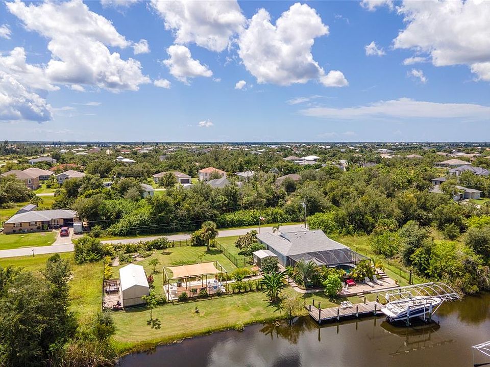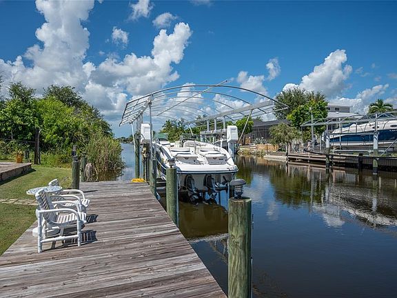 Welcome to your ultimate coastal escape perfectly positioned on a rare DOUBLE LOT in the sought-after waterfront community of South Gulf Cove. With DIRECT WATER ACCESS, a 38’ DOCK, 10,000 LB BOAT LIFT, and multiple outdoor living areas, this home invites you to live every day like you’re on vacation. ***Step inside and you’ll immediately feel the spacious, open flow with soaring cathedral ceilings, an airy great room, and wide sliding doors that bring the outdoors in. The chef-inspired kitchen features granite countertops, stainless-steel appliances, and an oversized peninsula ideal for casual dining or entertaining. Whether it’s a poolside brunch, sunset dinner party, or cozy evening indoors, this home was built for gatherings. ~~~The primary suite is your private retreat, offering French doors to the lanai, a walk-in closet, and a spa-like ensuite bath with granite counters, tiled shower, and a second closet for extra storage. Two additional bedrooms and a full bath ensure plenty of space for family or guests. ***Enjoy peace of mind with a NEW ROOF (2021), NEW HVAC (2023), HURRICANE SHUTTERS, TRANSFERABLE FLOOD POLICY, and no hurricane damage ever. The fully fenced yard is a tropical oasis, surrounded by lush palms and vibrant gardens, perfect for both privacy and play. ~~~Located just 7 miles from Boca Grande Causeway, you’re moments from world-class beaches, golf, fine dining, boutique shopping, and two MLB Spring Training stadiums. Optional HOA membership includes access to a community clubhouse, parks, and social events. ***This is Florida living at its best: boating, entertaining, and relaxing right from your own backyard. Don’t wait! Call today to schedule your private showing. We’re happy to accommodate weekdays, evenings, or weekends. Your paradise is waiting!