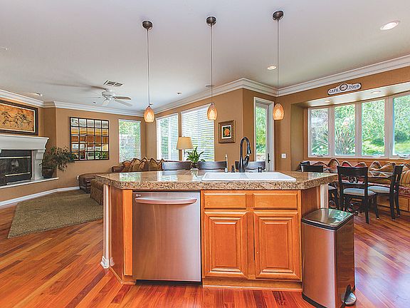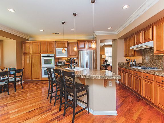 Bright Sunlit 2-story home, Beautiful gated Moorpark community. High ceilings, with carpet upstairs in bedrooms and beautiful hardwood flooring throughout. 3 bedrooms upstairs, with an office/den downstairs, all with plantation shutters. Family room fireplace andbuilt-in media center. Kitchen equipped with stainless appliances, granite counter tops, and center island. Master suite has his&hers walk-in closets, withbuilt-in shelving and cabinets. Master bath includes dual sinks and Jacuzzi tub. Laundry room upstairs,with sink. 2-car attached garage, with built-incabinets and plenty of storage. Backyard is beautifully maintained, with built-in BBQ and stone fire pit. Sorry, NO PETSAgents go direct, Supra box will be on the property 12/28 by 5:00pm.