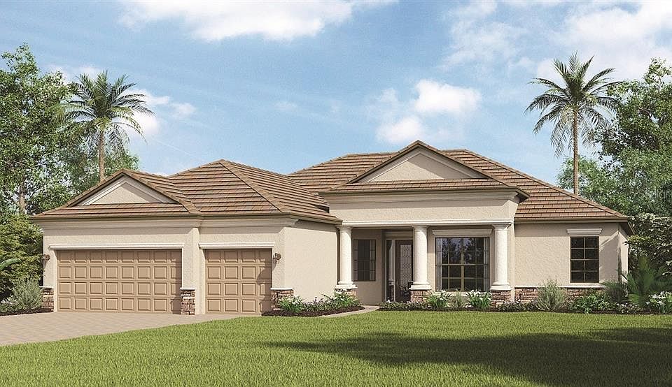 Under Construction. The Oakmont II is a split-bedroom floor plan with 2,361 square feet of living space home featuring 3 bedrooms, a den and 2.5 bathrooms. The Owner's suite boasts a large walk-in closet, dual vanities & sinks, soaker tub and separate shower. The kitchen with breakfast nook is open to an expansive great room that transitions seamlessly to the covered lanai. 3-car garage for storage of the family’s biggest toys. Rendering, pictures and virtual tour are of model and are used for display purposes only. Estimated delivery October 2022.