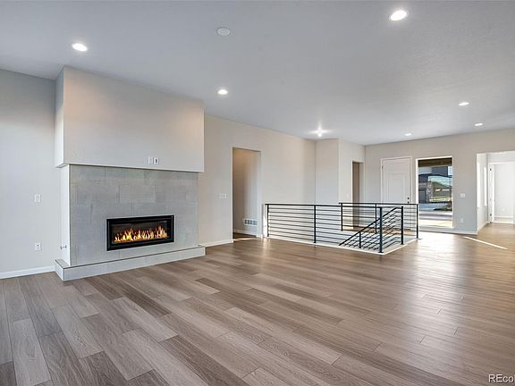 Thoughtfully designed single-story (ranch style) home with a finished walkout basement, open main floor, modern fireplace, open metal railing, primary suite with walk-in closet and attached bathroom. The spacious kitchen features stainless steel chef’s style appliances, light warm grey colored cabinetry with soft-close drawers, and ample quartz counterspace. The extended covered deck just off the great room allows for a seamless flow between indoor and outdoor living. Enjoy the additional space to stretch out with the added living and storage areas of the finished walkout basement with recreational room.