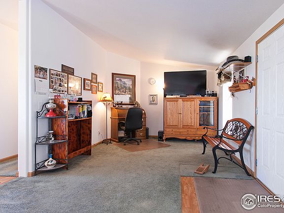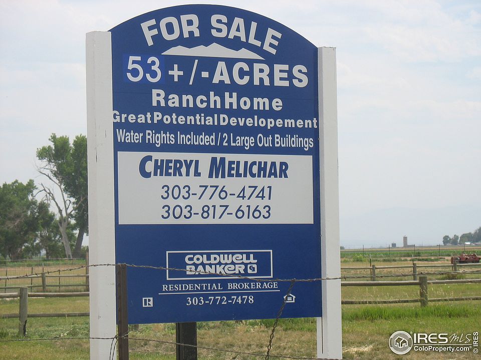 GREAT LOCATION! AWESOME VIEWS! 53+ ACRES OF IRRIGATED HAY GROUND WHICH INCLUDES WATER RIGHTS!1-Share Highland Water, 6-Shares of Sanborn and 2 3/4 Shares of #3 Ditch (Carrying Ditch). 2006 ranch style home (pre-fab modular on 4' crawl space) 2 large out buildings 43' x 60' & 40' x 50' with concrete floors, 130' loafing shed, 3 smaller enclosed buildings. Home on Little Thompson Water. This property could have great development potential!