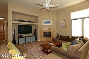 Great energy efficient home located in upscale Hidden Hills in Scottsdale. Elevated lot with absolutely stunning Mountain Views. Popular ''Texas Ebony'' floorplan offers 3 Bedrooms/2.5 Baths and a private office with a courtyard entrance. Sophisticated interior has 12 ft. ceilings throughout, gas fireplace, travertine tile and energy saving 10.4 Kilowatt Solar System. Gourmet kitchen has stainless steel appliances, 42in. cabinetry, double ovens, island and breakfast room. Multiple outdoor living spaces include private gated front courtyard and back covered patio. Backyard fun includes Pebble Tec pool, built-in BBQ and elevated viewing terrace with breathtaking sunsets. Quality newer build(2001)2x6 construction, Pella windows and doors. Close to world renowned medical and great schools.