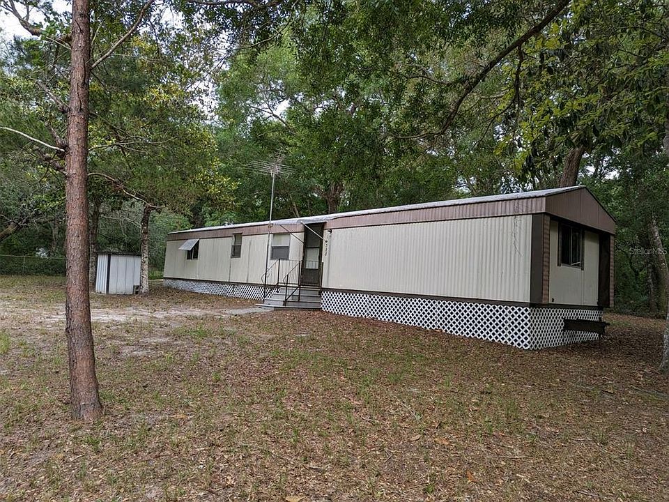 Spacious single wide mobile home in need of minor repairs. Amenities include furnishings and has an attached 20x23 screened porch with electric and water, also 2 storage buildings. Lots are fenced with 2 entrance gates and surrounded by undeveloped wooded lots which gives added privacy. Only minutes from the property are ATV trails and access to the Ocklawaha River. Close by is beautiful Lake Kerr, Salt Springs Run, and Lake George.