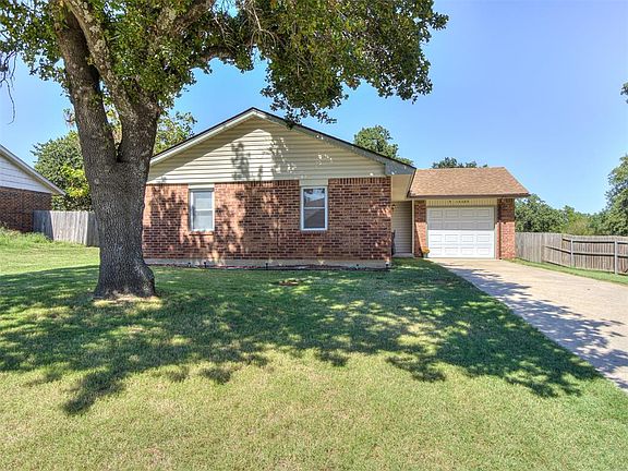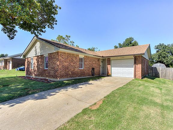 Welcome to your new home in the prestigious Choctaw School District! This charming 3-bedroom, 1.1-bathroom residence offers 1,125 square feet of a cozy yet spacious environment for you and your loved ones. The kitchen has matching, white appliances and a stylish tile backsplash, creating a modern touch. With ample counterspace and a direct view of the living area, entertaining will be a breeze, not missing out on the fun as you prepare a meal. With ceiling fans throughout, you’ll keep cool during warm Oklahoma summers, ensuring year-round comfort. The main bathroom boasts crisp white cabinets and countertops, giving it a clean feel and ample storage to organize your essentials. Don’t forget the adorable half bath in the master bathroom; with natural wood tones you’ve got convenience and the aesthetic! Other features include a laundry area with cabinet storage and a large backyard, perfect for outdoor activities and gatherings. Two storage sheds provide ample space for your gardening tools and outdoor equipment. Prime location! Just a few minutes from Choctaw High School and a mere 20-minute drive to Tinker Air Force Base. Don't miss the opportunity to make this wonderful property your new home!