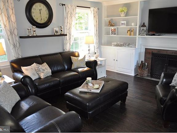 Completely renovated from top to bottom on a quiet cul-de-sac with a .83 acre level lot in Brookmead Farms! The current owners have re-sided the home with Hardieplank siding, installed a new roof, insulted windows and doors, completely renovated the kitchen, added wide plank hardwood floors and converted the porch into a den. Additional updates include a large Trex deck, updated bathrooms, a new HVAC system including central air, stair railing, interior 6-panel doors, garage door and shed - the list goes on! The entrance foyer features chair railing and wainscoting. The wide plank hardwood floors are throughout the main level, up the staircase and upstairs hallways with neutral carpeting in the bedrooms. The focal point of the formal living room is the brick wood burning fireplace flanked by built-in bookcases with storage and open shelving. The sunny kitchen includes island seating with pendant lighting, 42" white cabinets, granite countertops, stainless steel appliances, tons of pantry storage, coffee bar area, recessed lights and open to dining room with triple slider to the Trex deck. The side porch was converted into an office/study. Upper level master bedroom has two closets and au suite bathroom. There are two additional good-sized bedrooms and hall bathroom. Lower level family room has an outside entrance to the driveway, a powder room, laundry room and access to the garage. The garden level lot give you loads of room to play with the kiddies or room for a dog. This home is priced to sell and ready for a new owner!