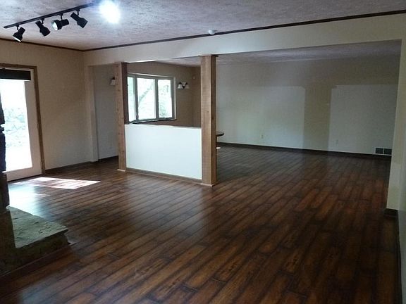 Plenty of room for everyone. This home sits on 1+ acre in a wooded and private setting and features: all one level living with 56x35 unfinished 2+car garage/workshop in basement. Eat in kitchen, formal dining room, living rm w/separate rec area, two additional rec rms, lrg laundry. Ten rooms in all. Many updates including: new windows, new heat pump compressor,granite tops, plumbing & lighting fixures, new vanities in baths & half bath in basement. A must see lots of possibilities. Septic Perks for 2Br see assets.