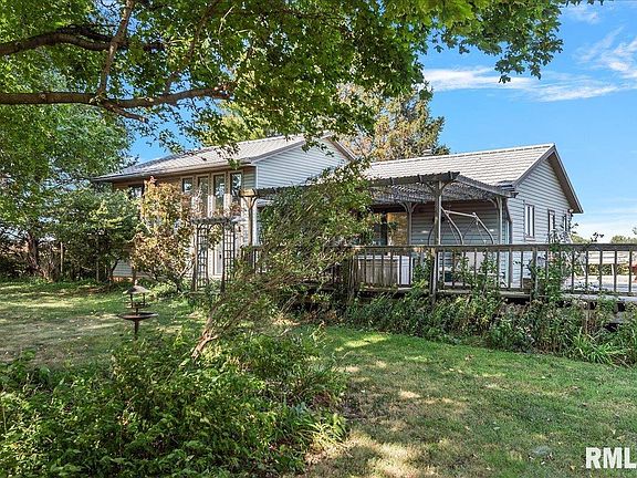 One owner home on 2 acres in Taylorville school district. 40x50 machine shed has 2 large sliding doors, a roll up door and small concrete area. 14 Provia replacement windows with argon throughout house. 5 Pella windows. Rural water, free standing solar panels. 2 year old above ground pool, new cover 2023. Lower level family room with 2 story windows allowing a lot of natural light. Hardwood flooring in kitchen, dining room and hallways on main floor. Master bedroom suite with soaking tub. Wrap around deck. Plenty of mature trees. Central vacuum. Whole house generator. 50 year steel shingles.