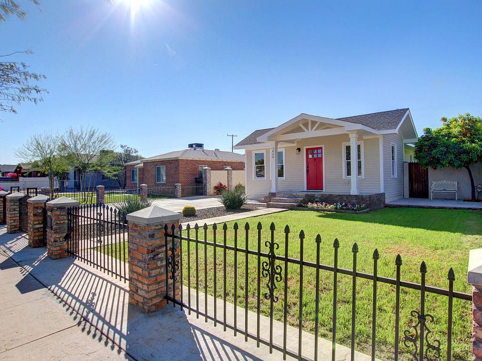 Stunning upgraded home in the historic district of Phoenix. Completely remodeled no expense spared Wood flooring and picture windows throughout. New tankless hot water heater. Eat in kitchen is complete with a plethora of custom cabinets, granite countertops, and black appliances. Master suite has ceiling fan, spacious closet, and ensuite. Laundry room with utility sink and storage. Oversized backyard features a covered patio with lush green grass, mature citrus and plenty of room for entertaining. This home is sure to go quick, so come see it today!
