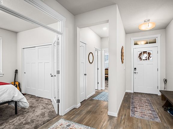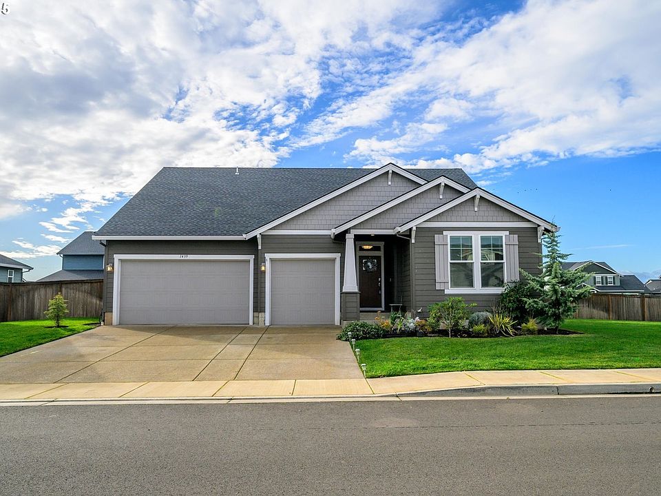 This darling one level home is perfectly situated on lesser traveled corner homesite in 2nd Phase of The Reserve. The home offers nice separation of space with the secondary bedrooms and full bath at the front of the home, and the elegant primary suite in the back of the home. One of the secondary bedrooms has double doors with a transom window. Could work perfectly as an office. Laminate flooring, granite counters, SS gas appliances, full tile backsplash, and gas fireplace accent this home. This home is fully fenced and move in ready! Don't miss the new deck and pergola! Beautiful neighborhood of newer homes, near farmland!