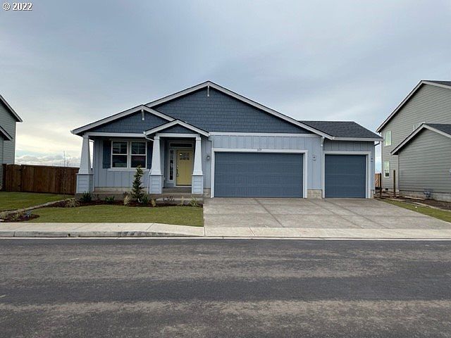 Move-in ready now! Darling bungalow-style 3 bed/2 bath home with 3-car garage. Den/office at entry with double glass French doors & transom window that opens the space. Kitchen offers white cabinets, granite counters, large island, full tile backsplash and 5-burner range. Open to Great Room. Stylish laminate flooring in entry, kitchen/dining room. Home automation, gas appliances, & tankless hot water heater! Full landscaping/irrigation front/rear yard as well as fencing.