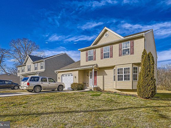 Spacious 3BR/2.5BA Colonial located on a spacious lot with waterfront views in Goodwood Farms. The entry hall welcomes you with hardwood floors and a bright and airy interior. The large living room beams with tons of natural light and boasts a gas fireplace surrounded by a wood mantel. Just steps away is a large formal dining room featuring chair railings. Next is the heart of the home, an open concept spacious family room, breakfast room with sliding doors to an oversized deck, and the open kitchen. The kitchen boasts tons of Oak cabinets, stainless steel appliances, and a stainless sink under the window that overlooks the spacious yard. A half bath and access to the one car garage with Two parking pad spaces that completes the main floor. Upstairs are two sizable bedrooms, a full bath, and a private primary suite featuring a tray ceiling, double closets, and a private ensuite bathroom with a jetted tub. The convenience of the second floor bath completes this floor. The lower level is unfinished offering tons of possibilities and offers a walk-out to the yard. From the breakfast room step out onto a large wood deck that overlooks the amazing yard filled with tons of green space and room to entertain with water access! This home is move-in ready and has so much to offer new homeowners. Imagine all this and within close proximity to shopping, restaurants, and commuter routes.
