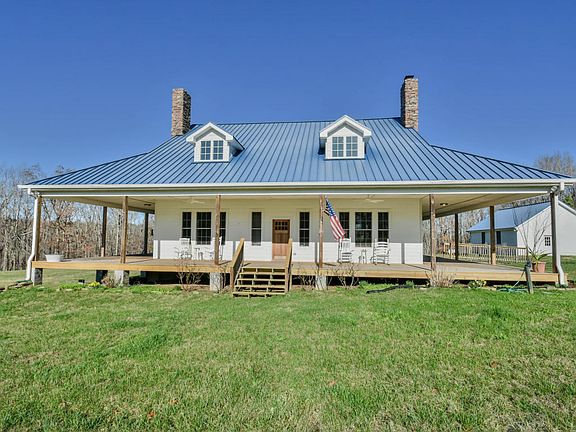 Must See! Custom built 3 Bedroom 2.5 bath home on over 6 acres of cleared land! Open concept living room with a beautiful stone wood burning fireplace and large windows to enjoy the views. This area flows to the dining room and large kitchen which includes an island, tons of cabinets, and a large pantry. First floor master suite includes stone fireplace and bath with jetted tub and walk in shower. Upstairs you'll find an open family room with two additional bedrooms. Also two very large storage areas. Take in the wildlife from the full wrap around porch totaling nearly 2,000 sqft! The detached two car garage allows for plenty of extra space and a workshop area.