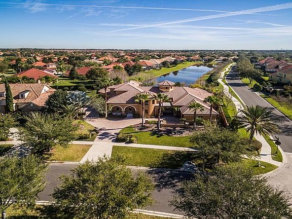 HUGE Price Reduction! Motivated Sellers! This stunning CUSTOM built Spanish Revival home is an entertainer's dream! You're welcomed in the home with solid wood doors & travertine floors into a sun filled two story turret. The ample gathering spaces feature a seamless flow from an octagonal living room, defined by a custom wood ceiling, through the open elegant dining room. The numerous windows and sliding glass doors highlight the views of Lake Whitney, from the front of the home into your lush outdoor living space. The chef's kitchen is remarkable, boasting granite counters & stainless steel appliances. For plenty of work space, there are 2 ovens, 2 dishwashers, 2 sinks and 2 islands as well as, 2 beverage drawers for quick distribution! Enjoy cooking at the 6-burner professional gas Thermador stove with a stone backsplash and pot filler. The kitchen and casual dining area overlook the family room with gas fireplace. A luxurious master suite with hardwood floors offers his and hers closets and sinks. You can also relax in the jetted tub. The generous 4th bedroom en suite is currently set up as an entertainment/game room with an enclosed garden. As you ascend upstairs, you will find two spacious bedroom en suites. The amazing finishes throughout this home are sure to impress! The private guard-gated Reserve at Belmere offers tennis courts, playground, fitness center, sand volleyball & a fishing pier. Located in SW Orlando near hospitals, schools, shopping, golf and area attractions.
