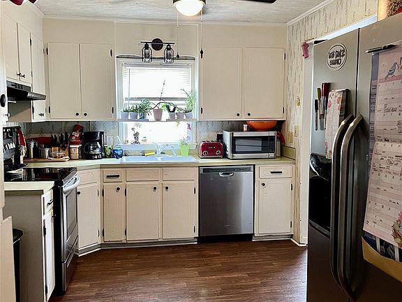 Don’t miss the chance to see this charming two bedroom home on corner lot with a wrap front porch. Home has new roof with 30 year warranty, tankless water heater, newer AC unit, all stainless steel appliances in the kitchen, a two car garage with a shop, enclosed sunporch, updated master bath and much more to offer! Home won’t last long!