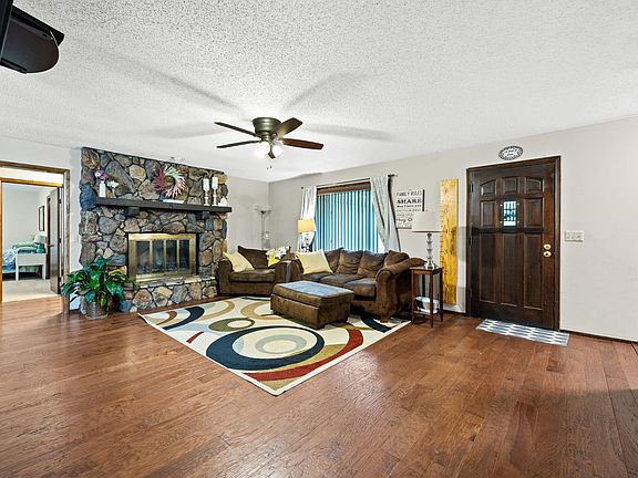 Nestled on a tranquil plot of just over an acre in the picturesque town of Peck, Kansas, this spacious residence offers a perfect blend of comfort, convenience, and versatility. Situated within the esteemed Mulvane school district, this 5-bedroom, 3-bathroom home is tailored to accommodate families seeking both ample space and modern amenities. Upon entering, a sense of warmth and sophistication greets you, courtesy of the large stone fire place. An expansive hallway that leads from the oversized 2-car garage. Individual lockers line this hallway, providing convenient storage solutions for the family's belongings. The heart of the home lies in the well-appointed kitchen, featuring an inviting eating bar and a separate pantry, ideal for culinary enthusiasts and hosting gatherings with ease. The master suite offers a private sanctuary, complete with its own ensuite bathroom, ensuring a peaceful retreat at the end of each day. Meanwhile, the remaining bedrooms provide ample space for family members or guests, with three additional bathrooms ensuring convenience and comfort for all. Entertainment options abound in this thoughtfully designed residence. Descend into the basement to discover a large bonus room, perfect for recreation or relaxation, as well as a dedicated theater room for cinematic experiences from the comfort of home. The outdoor space is equally impressive, with a sprawling backyard offering endless possibilities for outdoor enjoyment. A deck provides an idyllic setting for soaking in the natural beauty of the surroundings. A garden area beckons green thumbs to cultivate their favorite plants, while play equipment promises hours of fun for children. A storage shed provides convenient storage for outdoor essentials, ensuring a clutter-free environment. For the avid hobbyist or handyman, the property boasts a second detached 4 car garage located in the back, complete with RV parking and an upstairs workshop. An oil changing pad adds to the convenience, making maintenance tasks a breeze. In summary, this remarkable residence in Peck, Kansas, offers a harmonious blend of spacious living, modern amenities, and outdoor enjoyment, making it the perfect place to call home for discerning buyers seeking comfort, convenience, and versatility. Don't miss out on this beauty! Call today for your showing!