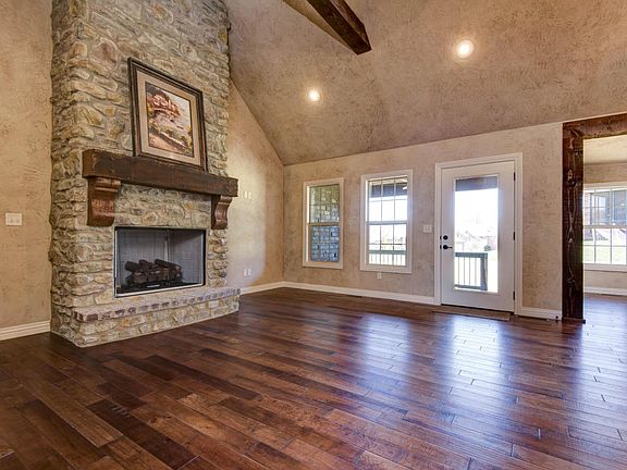 New Construction by Old World Cottages (Design and Build). No Detail has been missed...timeless character throughout. House features an open floor plan with rough sawn wide plank hardwood flooring, granite counter tops, tile floor in bathrooms,stone chimney and fireplace, raised hearth, knotty alder cabinetry with dovetail joinery, large kitchen island, jetted bathtub, tiled shower, walk-in master closet, beam work and corbels on interior and exterior, exterior cedar shutters, Old World Brick.
