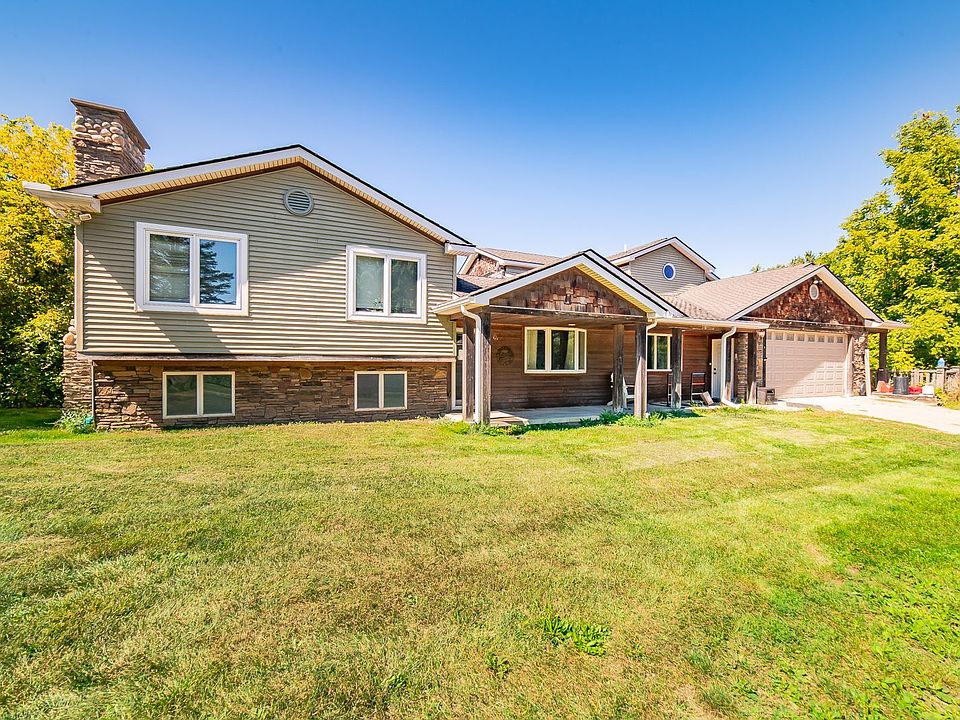 Sprawling multi-level home on 4.88 gorgeous acres in Groveland Township. Fantastic opportunity for 2 family residence, as home is currently 2 separate living spaces. Many updates have been completed, finishing touches are needed but the potential is endless. Perfect in-law or parent care opportunity or rent one side as well. Home has 2 separate basements, one is partially finished. 2 separate generator connections (there are not existing generators). Partially finished walk-out basement features a bunker/shooting range with thick cement walls, unfinished sauna & 1/2 bath. 6 spacious bedrooms throughout the home, 2 kitchens & 4 full bathrooms perfect for a growing family. Custom wood work throughout newer constructed addition, as well as an elevator (currently not working). Spacious back deck overlooking your gorgeous private backyard. Deer blind on property included. Oversized 2 car garage with upper level for storage space. Generous 2 story pole barn features a wood burning stove & plenty of space for a lawn mower, tractor, etc. Newer HVAC throughout entire home as well as newer water heaters, water softener & well bladder tank. HIGHLIGHT SHEET WITH UPGRADE DATES IS WITH DISCLOSURES ONLINE. Showings Thursday/Saturday/Sunday from noon to 8:00 pm.