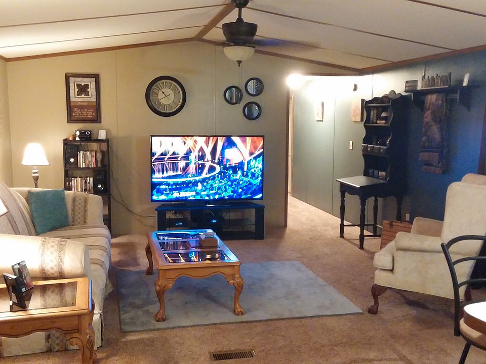 This home is for sale and in EXCELLENT shape. 3 bedrooms, 2 full baths, ceramic tile floor in kitchen and front bathroom, costume painted kitchen cabinets, roof newly sealed. This price includes all appliances washer, dryer, stove and refrigerator. It also includes double sided building, privacy fence and front porch. This home is currently located in a mobile home park and the buyer will be responsible for moving or arrangements with park owner for lease on lot. It is ALL ELECTRIC and price INCLUDES NEW CENTRAL HEAT AND AIR UNIT. Asking 16K OBO message, call or text 6062092967 or CALL 9377955158 for more information. A MUST SEE!!