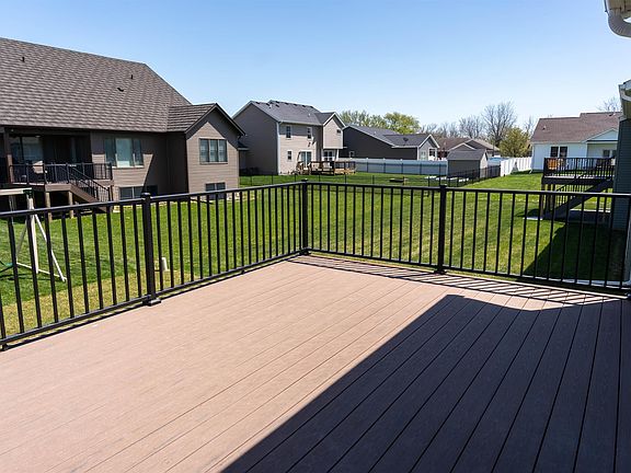 Wonderful ranch style home with a grand open floor plan and vaulted ceiling. Walk up the house where you're greeted to a large front porch, enter the home to the foyer and a spacious great room with a gas fireplace leading to the kitchen/dining area with a big center island with Quartz countertops. Off the kitchen is the main floor laundry room, and back foyer lockers and storage cabinet leading to an oversized 2 car garage with an additional 6x7 storage area for tools or motorcycle. Primary bedroom suite had a trayed ceiling, huge walk-in closet and double vanity bathroom with a large shower stall. Second bedroom & guest bath complete the main floor. Finished basement features a huge Rec Room for entertaining, 2 bedrooms with egress windows, full bath and a large utility room. Off the dining area through the sliding door is a spacious deck with a staircase leading down to the backyard. Owners are principles of the corporation and licensed REALTORS in Iowa.