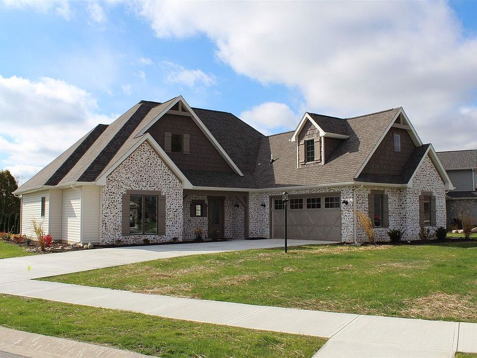 Must see the unique features of this new FRENCH COUNTRY style home. The home features a side entry garage and a covered Portico adds to the charm of this beautiful home. The home has the feel of a French bungalow sitting on a quaint side street in Paris. You will love the special finish of the brickwork -a German Schmerer application gives a creative appeal to the facade. This attractive new home has three bedrooms on the main floor (a split floor plan) and a large finished bonus room over the garage. The Great room, kitchen, and dining area are all open to each other -a popular design for today's active families. The stylish kitchen has white cabinets with a custom hood over the range. The Great room features a gas fireplace- located on a wall with a shiplap finish. The home is on a lot with a pond view. Take a look today!