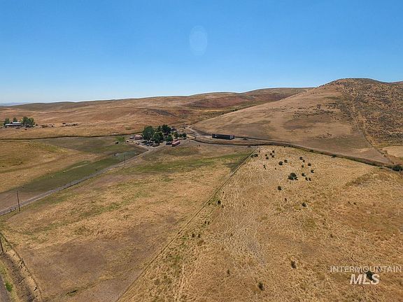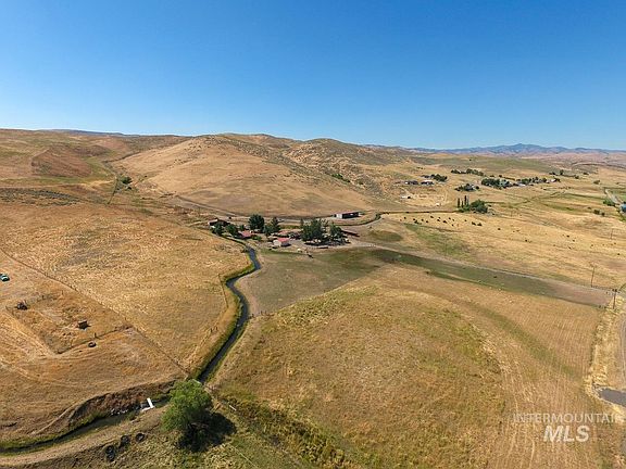 MANN CREEK AREA!!! View, View & more Views!! 3Bed/1Bath, Country Home w/original hardwood in most of house. Basement can be so many things, pantry, bedroom, play room, etc. Separate Bungalow/bunkhouse @ 600' it could be so many things, MIL, Office (fully livable) Property has 9 irrigated acres, 18 dry acres, (rolling hills), Shop (24x24) already is wired w/electricity, it just needs hooked up. BRAND NEW LARGE (36x80) livestock barn/hay storage. Open front as well as each end. Shade trees, fruit trees, year around stock water in ditch. 5 minutes from Mann Creek Reservoir and minutes from town. House & Bunkhouse are nestled amongst trees and sits back off the road for privacy.